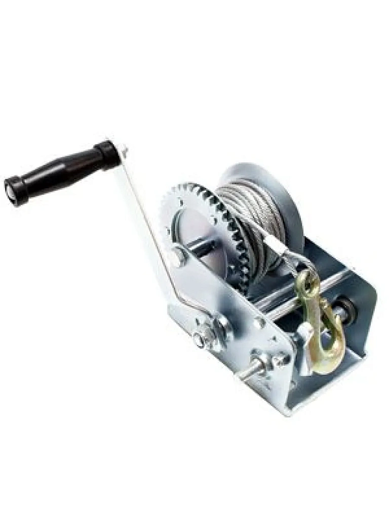 В комплект поставки входит рукоять, трос (длина м) и стальные крюки. Крюки оборудованы щеколдой предотвращения срыва груза.