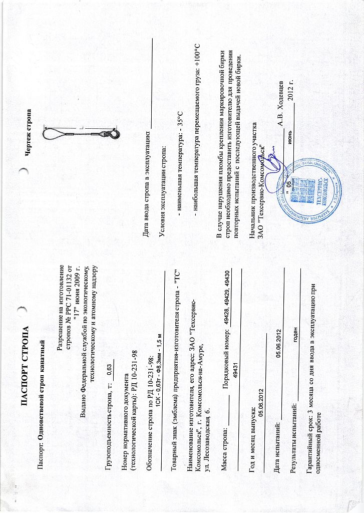 Одноветвевой строп производится согласно регламентирующим документам: ГОСТ 25573-82 и РД-10-33-93.