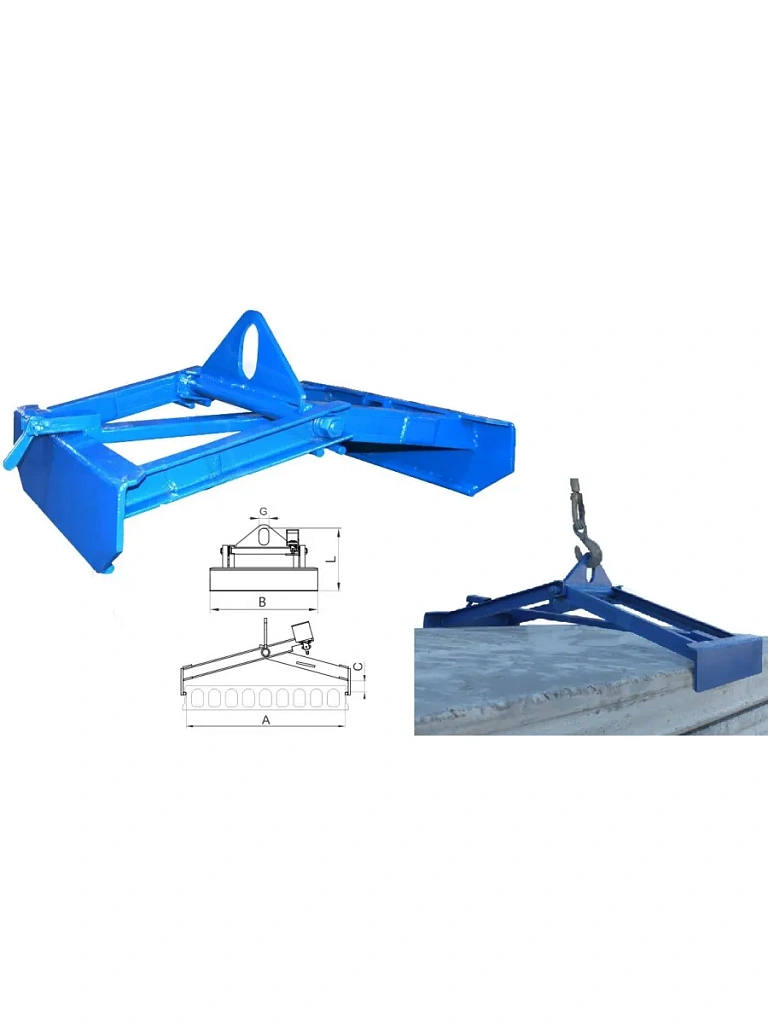 Захват представляет собой полуавтоматическое приспособление клещевого типа. При установке захвата на плиту, стропальщик выставляет замок захвата в рабочее положение, при подъеме осуществляется зажим плиты за буртик или иные выступающие элементы, расстроповка груза происходит в автоматическом режиме без участия стропальщика.