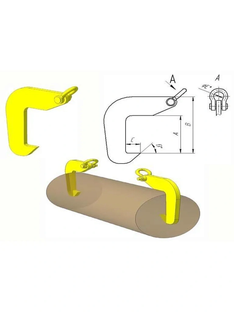 Захват представляет собой крюк с заостренным основанием рабочего участка. Именно по этому их часто называют крюками для подъема бревен за торцы. Их так же называют захватами для леса.