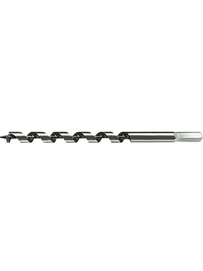 Изготовлено из углеродистой стали с твердостью режущей части 40 HRС. Сверло имеет центрирующее остриё со спиральной нарезкой, уменьшающей осевую нагрузку, и острую подрезную кромку, которая позволяет с высокой точностью просверлить отверстие с гладкими поверхностями, предотвращая смещение сверла и исключая необходимость в предварительном засверливании. Шестигранный хвостовик обеспечивает надежное удержание сверла в патроне.