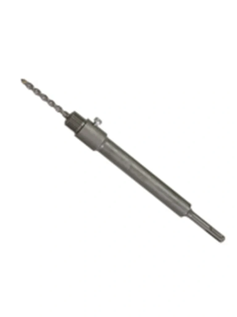 Хвостовик изготовлен из углеродистой стали и имеет профиль SDS-PLUS, применяется с перфораторами. Служит для крепления центрирующего сверла и позволяет увеличить глубину сверления коронками по бетону.
