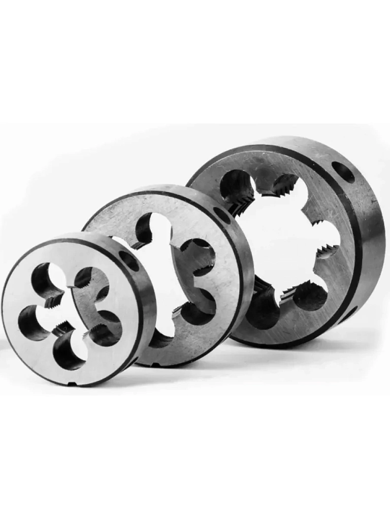 Плашки с правой резьбой применяются для слесарных работ и работ по нарезанию наружних резьб с использованием воротка или плашкодержателя, или при невращающейся плашке на станках общего назначения.