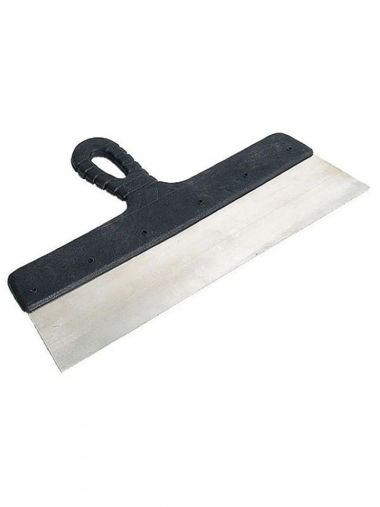 Облегченная ручка из ударопрочной пластмассы. Ручка шпателя имеет специальную (изогнутую) форму, что обеспечивает максимально удобную работу. Шпатель предназначен для нанесения, выравнивания и сглаживания шпаклевочного слоя на больших и малых поверхностях.