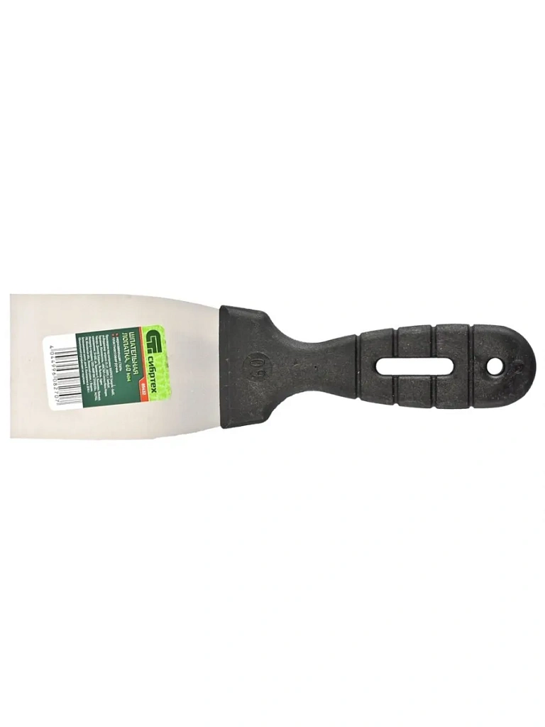Полотно шпателя изготовлено из нержавеющей стали 30Х13 (12Х17). Облегченная ручка из ударопрочной пластмассы. Ручка шпателя имеет специальную (изогнутую) форму, что обеспечивает максимально удобную работу. Шпатель предназначен для нанесения, выравнивания и сглаживания шпаклевочного слоя на больших и малых поверхностях.