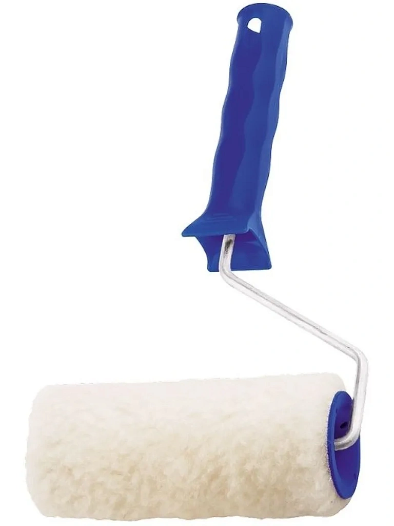 Шубка валика малярного выполнена из искусственного меха с добавлением натуральной шерсти и по структуре напоминает шерсть ягненка. Применяется для нанесения лакокрасочных материалов на водной и масляной основе на гладкие, грубые и шероховатые поверхности. Наличие шплинта позволяет легко заменить красящую шубку.