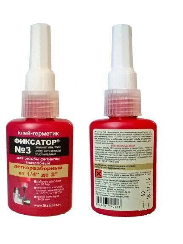Среднепрочный анаэробный клей-герметик «Фиксатор-3» представляет собой однородную тиксотропную композицию, отверждающую в узком зазоре между металлическими поверхностями c образованием полимера. Химическая основа- диметакриловый эфир. Причем, благодаря уникальным характеристикам, «Фиксатор-3» можно наносить даже на загрязненные поверхности (если уровень загрязнения невелик).