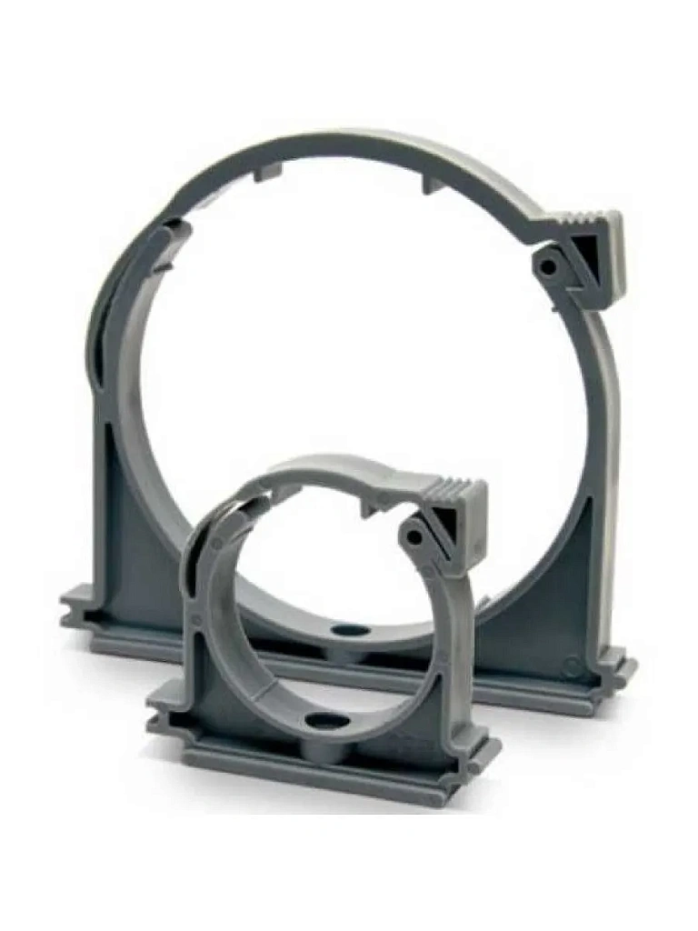 Хомуты используются для фиксации элементов трубопроводной системы к стене или иной опоре, выпускаются диаметром 40 мм, 50 мм и 110 мм. Расстояние между хомутами должно составлять: для горизонтальных линий - 10 диаметров прокладываемой трубы, для вертикальных линий (для стояков) - 1000 - 2000 мм.