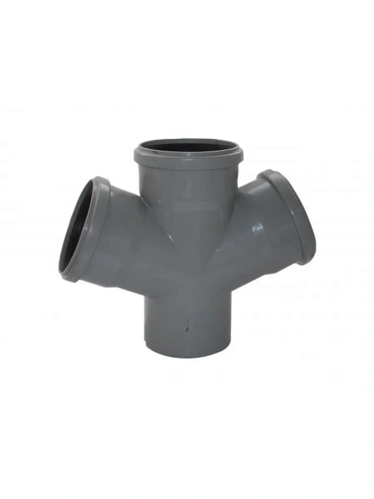 Крестовина одноплоскостная используется при монтаже двух ответвлений от основного канализационного стояка, транспортирующего стоки внутри зданий.
