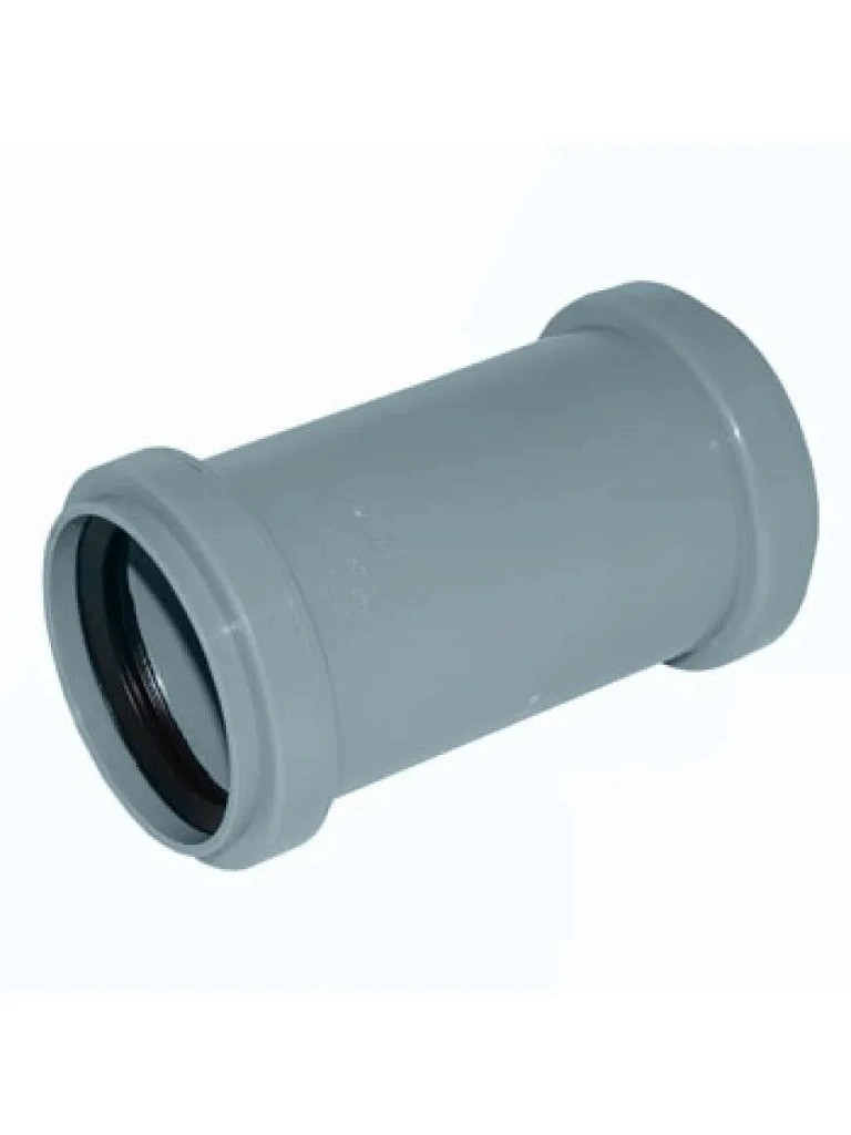 Муфта служит для соединения канализационных труб, не имеющих раструб либо в случае их ремонта. В качестве уплотнителей используются резиновые кольца манжетного типа с распорным вкладышем. Монтаж желательно производить с применением специальной силиконовой смазки.