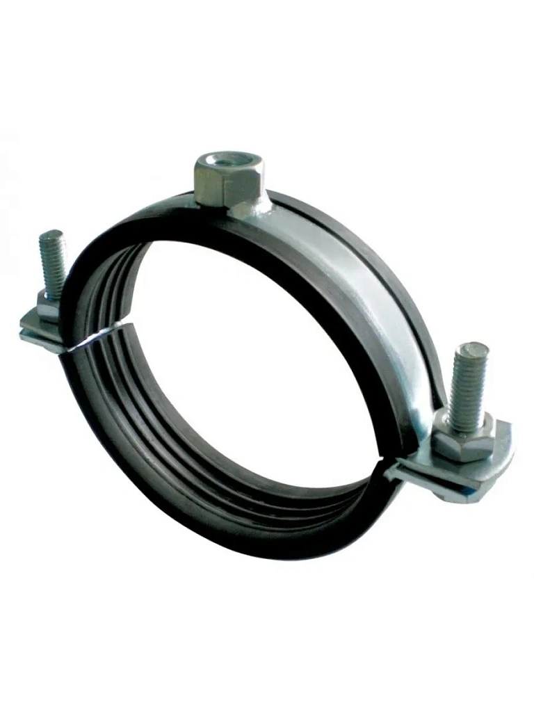 Крепление представляет собой соединение двух полуколец. Одно из них оснащено универсальным монтажным пазом, который обеспечивает удобство установки к горизонтальным или вертикальным поверхностям. Хомут для крепления тяжелых грузов обладает специальной крепежной головкой, которая выдерживает серьезные механические нагрузки. Наличие резиновой вставки на полукольцах способствует особенно надежной фиксации труб. Оцинкованное покрытие хомута толщиной 8-10 микрон обеспечивает необходимую антикоррозионную защиту. Специальное отверстие в головке делает невозможным искривление оси.