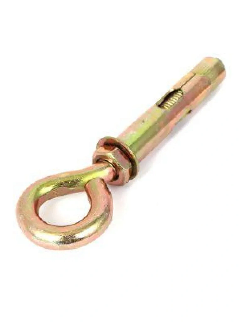 Принцип работы анкерного болта с кольцом прост: при ввинчивании кольца в резьбовое отверстие конического элемента, за счет поступательного движения последнего расширяется распорный элемент и анкер с кольцом надежно фиксируется в материале.