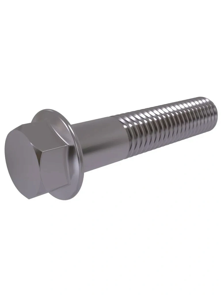 В тяжелом машиностроении для соединения стальных конструкций используются высокопрочные болты. Болт с фланцем DIN 6921 обладает высокой прочностью и обеспечивает надежную фиксацию даже в условиях высоких динамических нагрузок. Для затяжки высокопрочного болта требуются большие усилия, поэтому болт снабжен фланцем, который не позволяет материалу заготовки деформироваться. Фланец болта может быть рельефный или плоский.