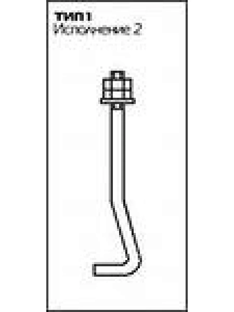 В отличие от фундаментных болтов типа 1.1, этот крепежный элемент обладает изогнутой шпилькой с прямым крюком. Его размерный ряд соответствует типу 1.1, минимальная резьба составляет 12 мм, а максимальная – 48 мм. При этом длина резьбы может достигать 150 мм. Отличаются и размеры загнутого крюка в зависимости от подтипа, которых у фундаментных болтов типа 1.2 насчитывается 3.