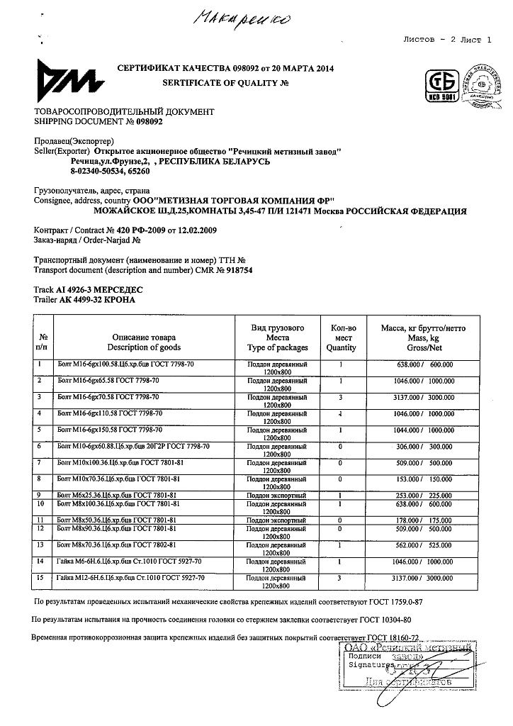 Класс прочности 5.8.