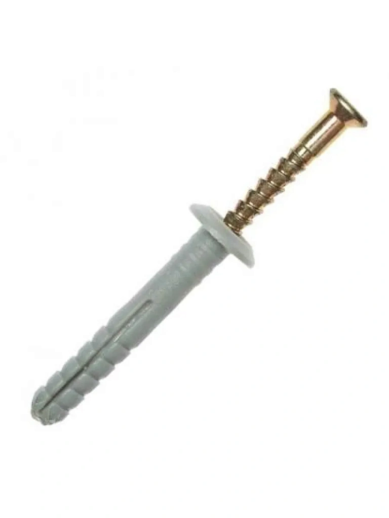 Полипропиленовый распорный дюбель для быстрого монтажа с грибовидным бортиком. Стальной оцинкованный шупур (желтый цвет) с увеличенным подголовником.