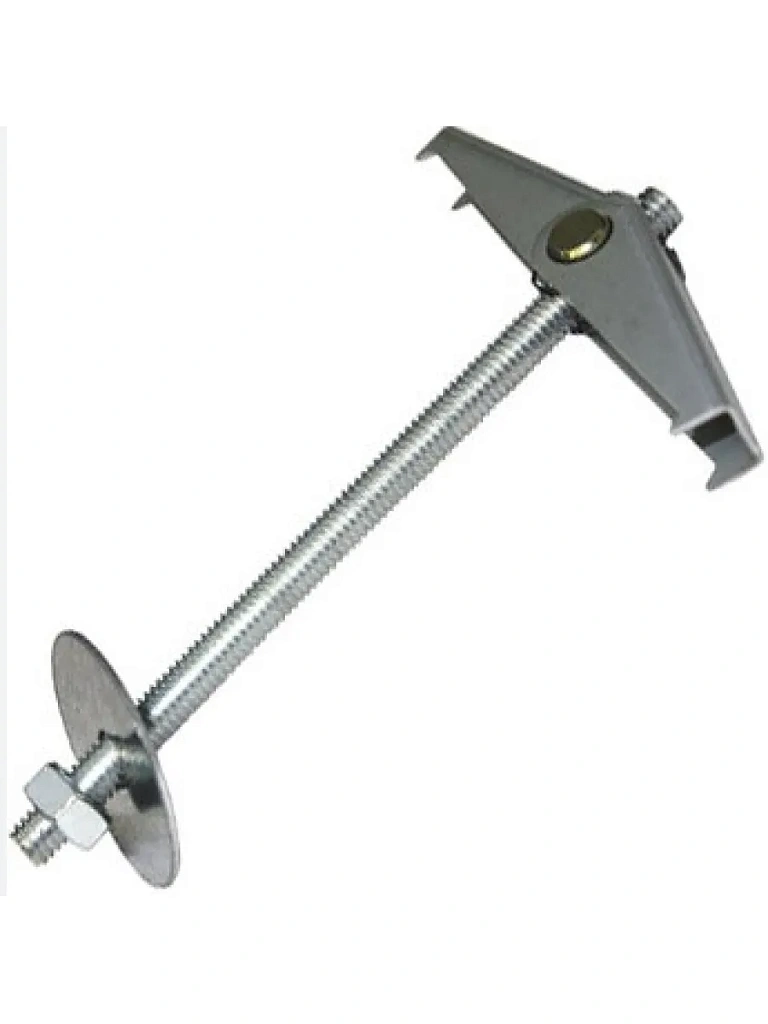 Складной пружинный дюбель с окончанием в виде крюка используется для монтажа люстр, растяжек, кабель-каналов, электроприборов, подвесных элементов декора и других легких строительных конструкций к пустотелым основаниям.