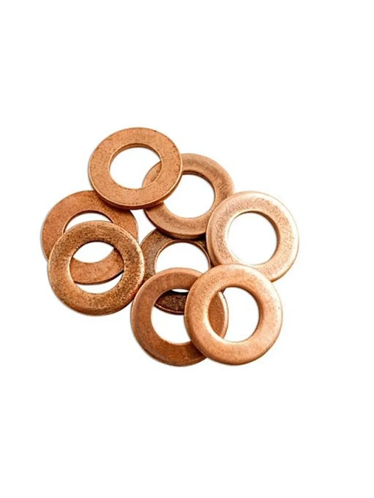 Медные шайбы применяют для уплотнения в топливных насосах, двигателях, масляных насосах, гидравлических, пневматических соединениях. Шайбы изготовлены из меди марки М1М поэтому они имеют высокую пластичность и высокую стойкость против коррозии, это позволяет применять в агрегатах высокого давления. Физико-химические свойства меди обеспечивают работоспособность шайб в различных агрессивных средах при больших амплитудах рабочих температур.