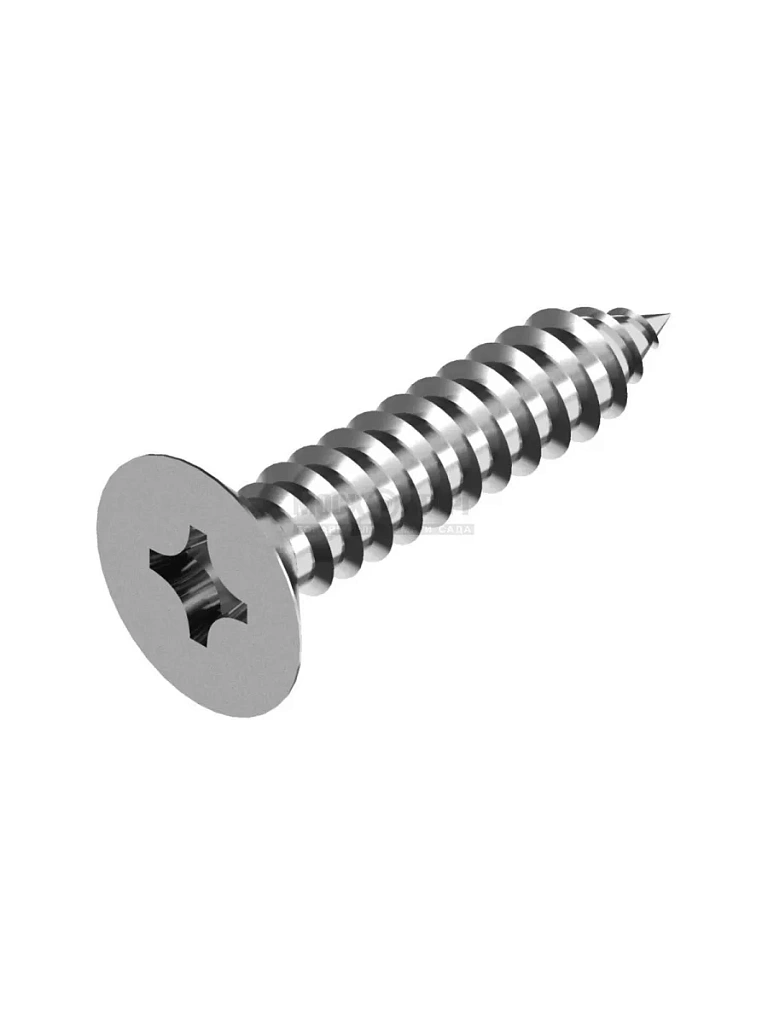 Винты самонарезающие с потайной головкой DIN 7982 крестообразный шлиц, форма С - острый конец – метиз используют в разных областях производства и строительства. Конструкционные особенности обеспечивают изделию широкий спектр применения для крепления элементов из дерева, пластика и металла. При установке в мягкие материалы отпадает необходимость в предварительном сверлении отверстия – заострённый конец резьбы обеспечивает удобное и быстрое вкручивание без лишних технологических операций.