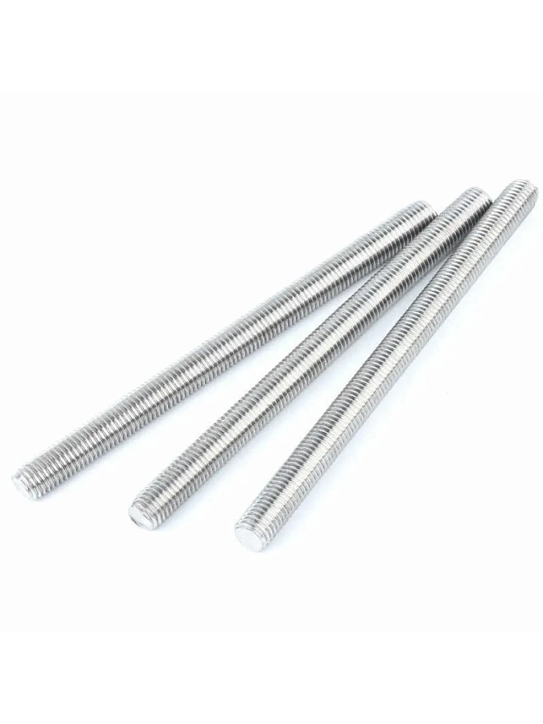 резьбовыми крепёжными изделиями соответствующего диаметра. Представленное изделие производится из нержавеющей стали высокого качества марки А2 или А4. Длина стержня 1, 2 или 3 м. Резьба однозаходная с номинальным диаметром от М2 до М48.