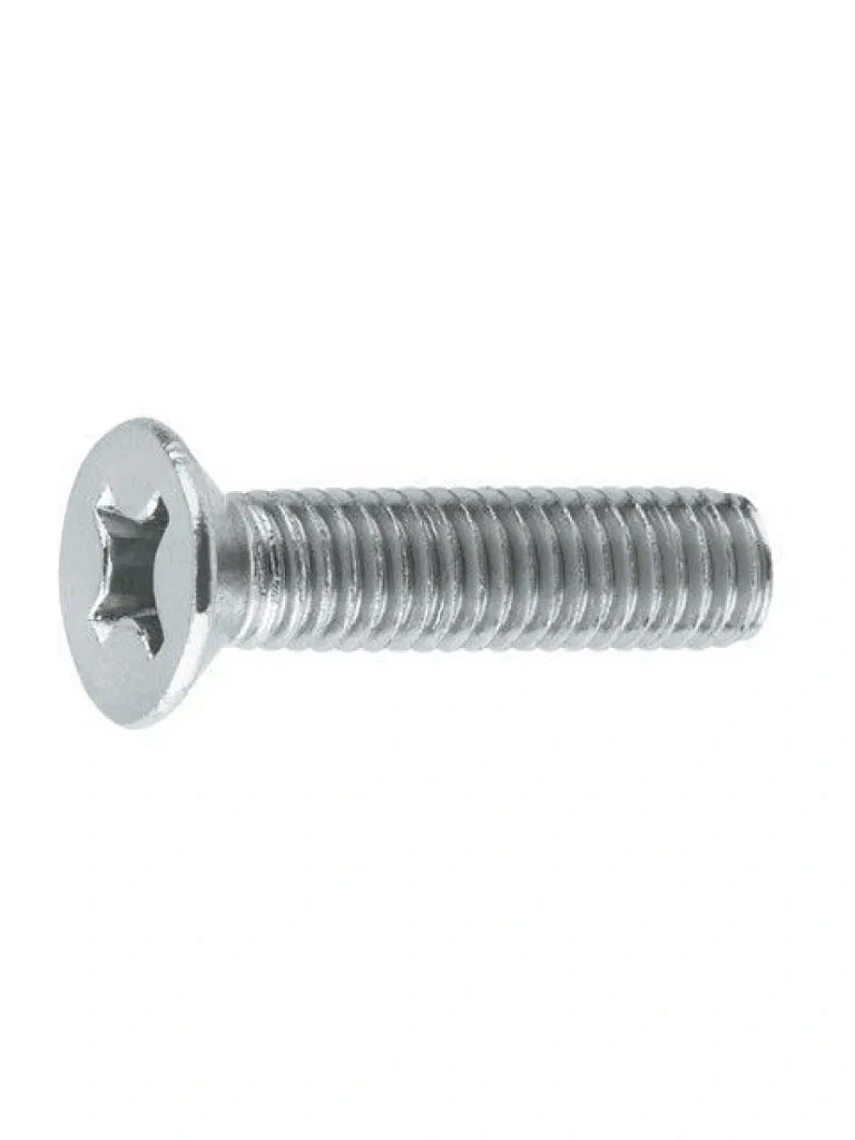 Нержавеющий винт DIN 965 А2 и А4 с потайной головкой и крестообразным шлицем предназначен для создания совместно с гайкой, механического разборного соединения заподлицо с плоскостью скрепляемого материала. Конструкция болта состоит из конической головки с плоским верхом и стержня с неполной резьбой.