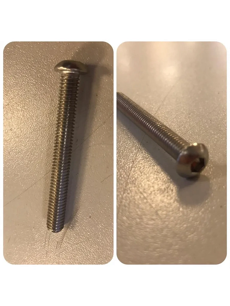 судов, автомобилей. Винт DIN 7985 А2 представляет собой метиз, состоящий из шляпки с закруглёнными краями и сплошной резьбой.