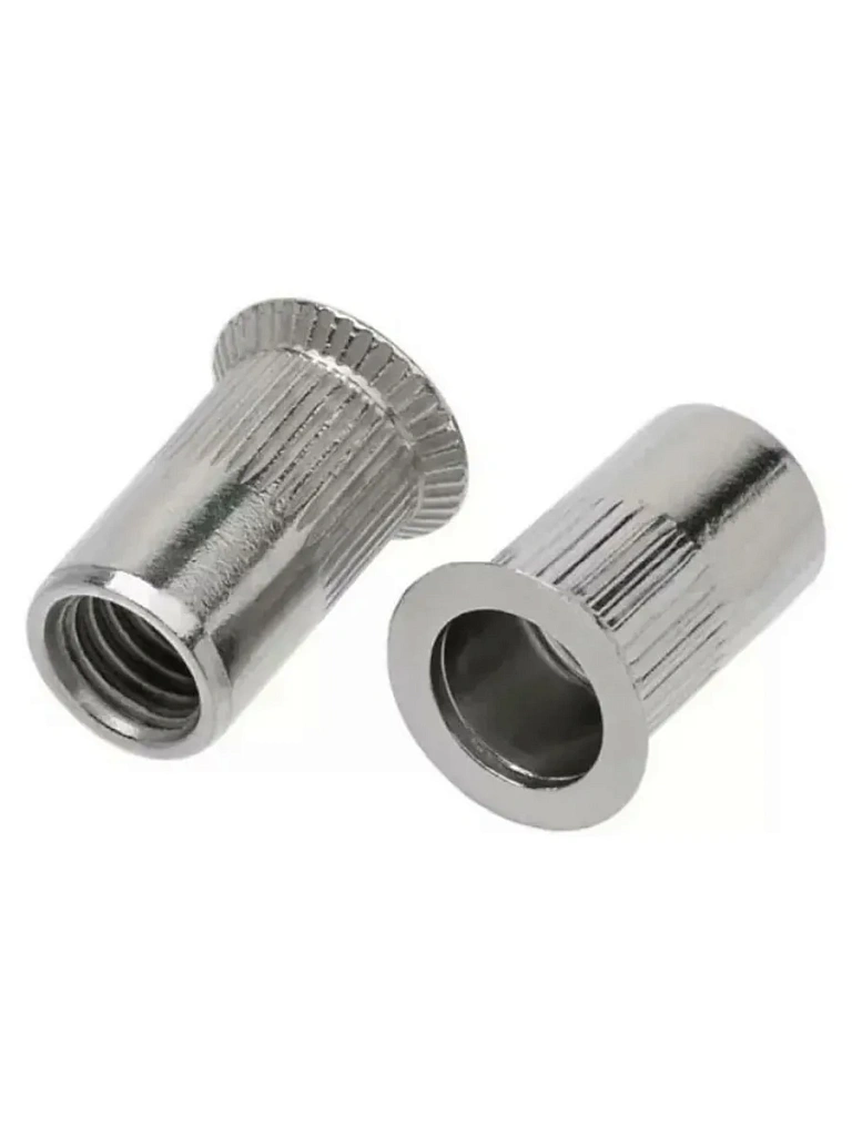 Такие заклепки имеют резьбу на внутренней поверхности. Для установки используется специальный заклепочный инструмент. Заклепки с резьбой обеспечивают два вида соединения одновременно: заклепочное и болтовое для крепления дополнительных деталей или обеспечения внешнего монтажа.