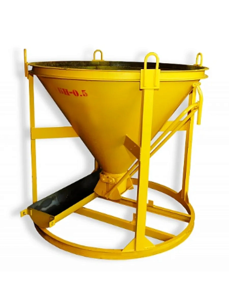 Бункер бетонной массы БН используется для транспортирования и выгрузки бетонов, а также для удобной заливки как бетонных перекрытий, так и колонн монолитно-каркасных конструкций.