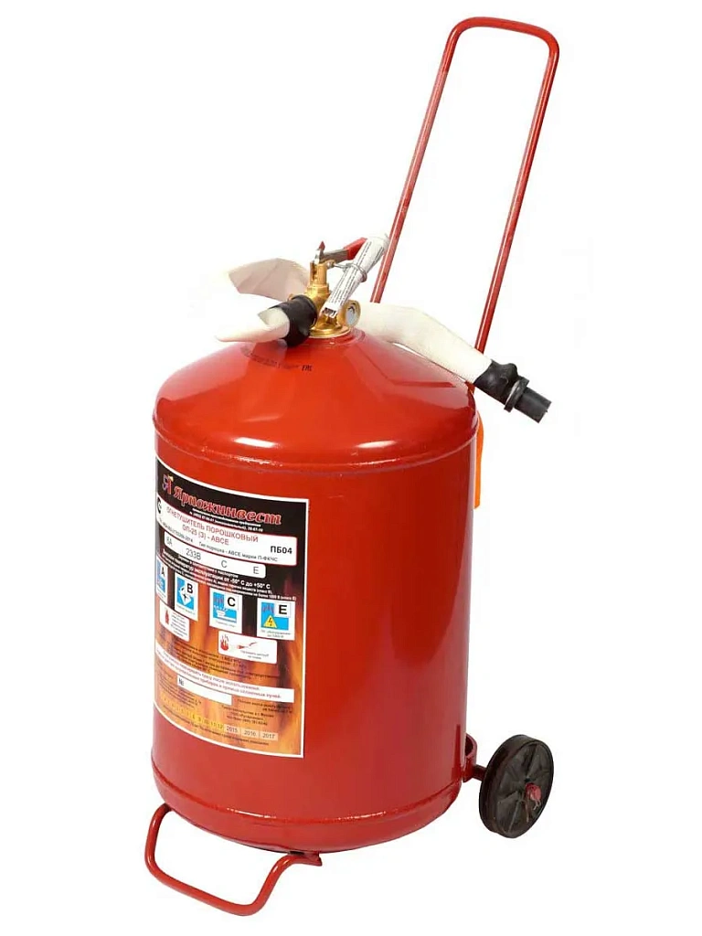 Огнетушители порошковые закачные Ярпожинвест ОП-25(З) с массой огнетушащего вещества 50,5 кг предназначены (в зависимости от вида заряженного порошка) для ликвидации пожаров твердых веществ, в основном органического происхождения (класс А); пожаров горючих жидкостей или плавящихся твердых веществ (класс В); пожаров газообразных веществ (класс С), а также пожаров электрооборудования, находящегося под напряжением не более 1000 В (пожар класса Е), при эксплуатации в условиях умеренного климата У, категории 2, тип атмосферы II по ГОСТ 15150.