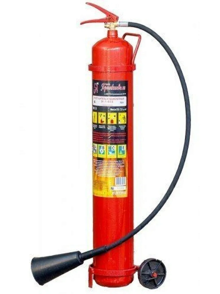 Передвижной углекислотный огнетушитель ОУ-10 для для тушения горючих жидкостей, газов и электрооборудования.